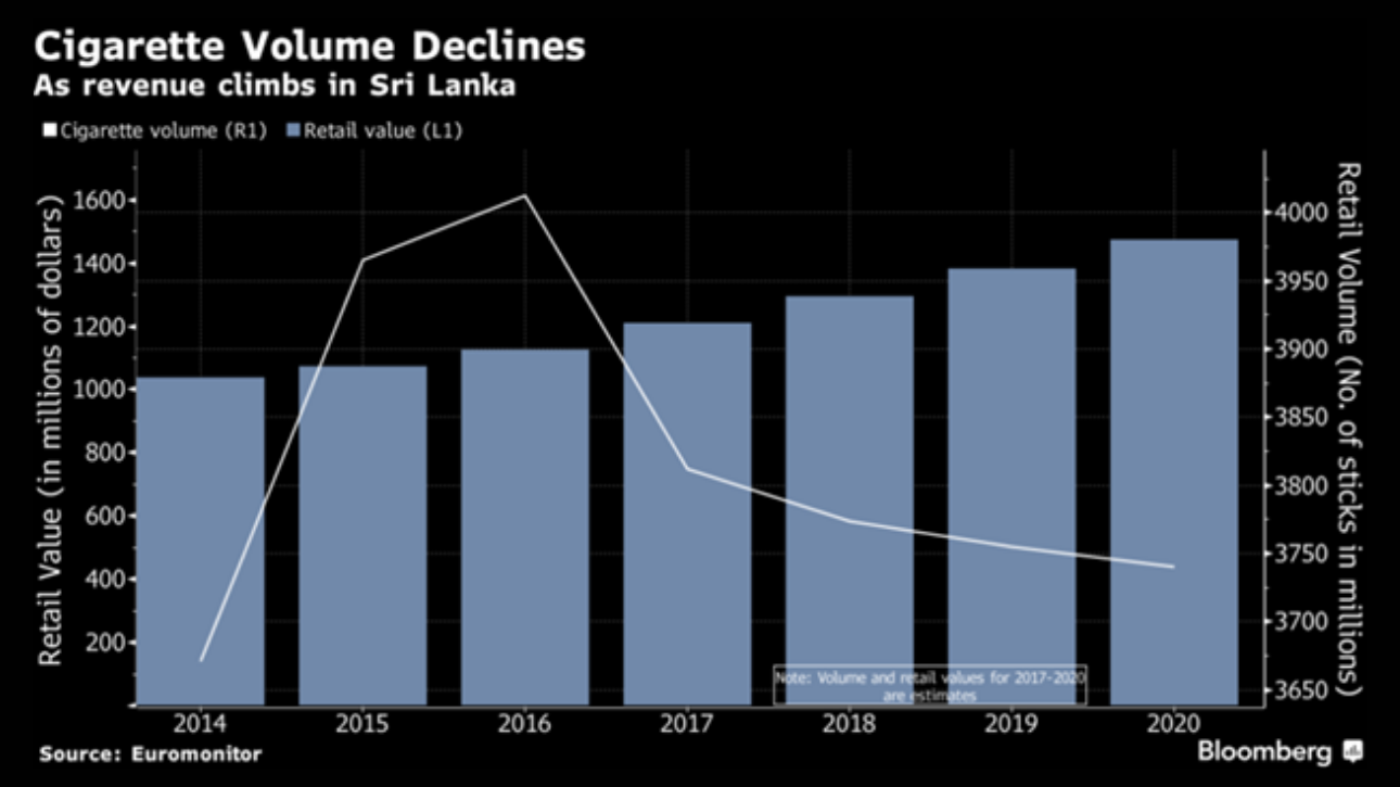 Measures being taken by Sri Lanka are in line with those by governments across the world to curb smoking. In 2015, the island nation ordered 60 percent of a cigarette packet’s surface be covered by pictorial health warnings and a few months later increased it to 80 percent. China, where 44 percent of all cigarettes are smoked, banned smoking in public places in 2015. And India and Indonesia have been raising cigarette taxes.